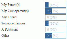 Last month's poll was interesting. I thought there'd be more votes for famous people and politicians. That's good though :) Family is important.